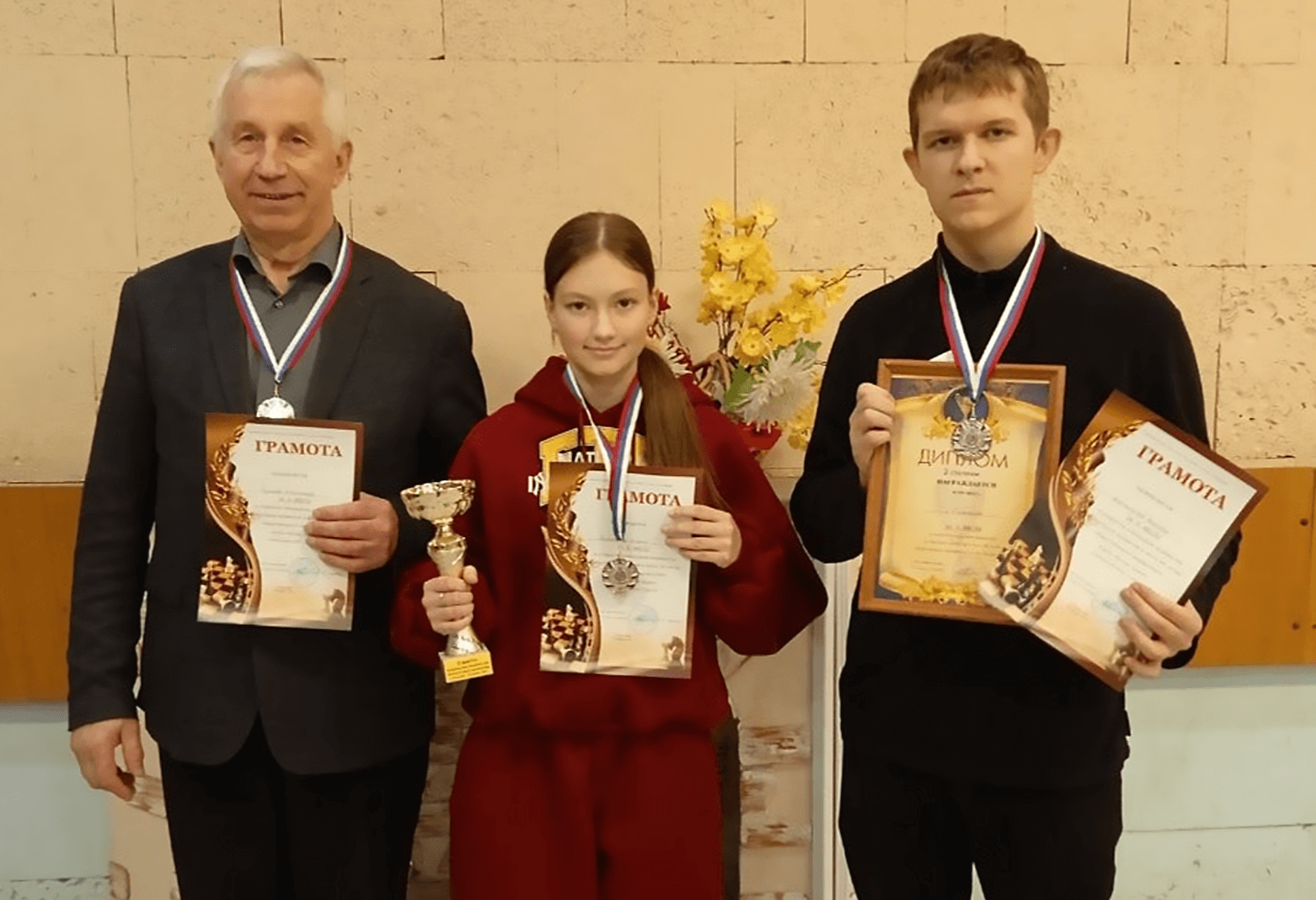 🥈 2 место - команда Козельска: Даниличев Виктор, Баранова Алёна, Бугаев Александр (15,5 очков из 21 возможных)