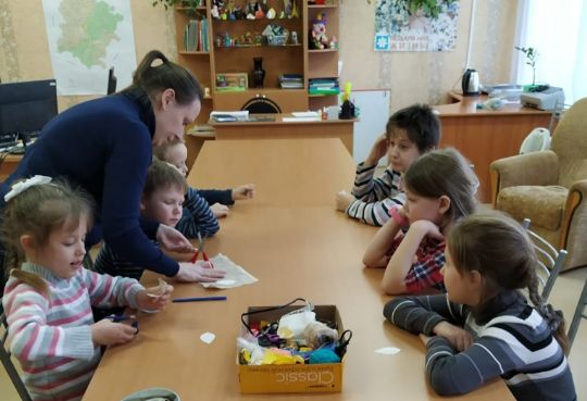 05.02.21 4 февраля состоялась очереднаямузейная встреча с воспитанниками Сосенского реабилитационного центра «Ровесник». Тема занятия была «Народные игрушки». Ребятам были показаны богородские деревянные игрушки, глиняные свистульки, птички из соломы, тряпичные игровые куклы из коллекции музея этнографии и быта Сосенского КДЦ. На мастер-классе каждый ребёнок сделал по одной тряпичной кукле.