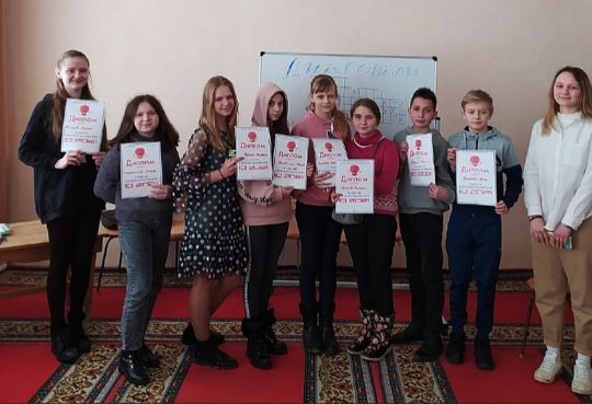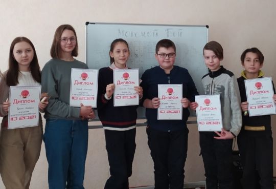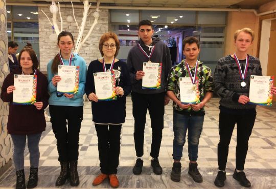 1 место - команда СОШ №2 в составе Момбаев Кирилл, Карапетян Ишхан, Марков Захар, Горбунова Виктория;