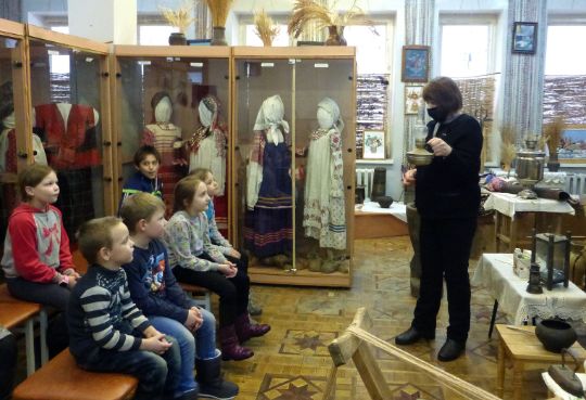 29.01.21 28 января гостями музея этнографии ибыта Сосенского КДЦ стали воспитанники группы кратковременного пребывания Сосенского реабилитационного центра «Ровесник». На занятии дети познакомились с бытом жителей деревень Козельского района 1 половины прошлого века, основными орудиями труда и предметами утвари, узнали, какое освещение было в домах до появления электричества, как готовили еду, из чего шили одежду и как обрабатывали лён, чтобы из него получилась ткань. Занятие проводилось в рамках проекта «Музейные встречи».